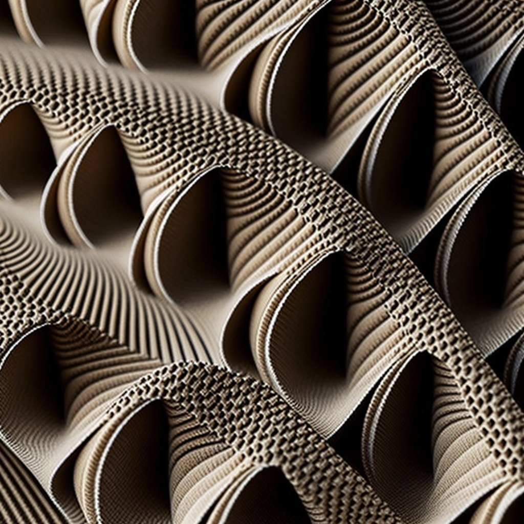 The textile pattern is made of high-quality, lightweight fabric that has been carefully woven using intricate patterns and techniques. The fabric itself is translucent, allowing light to pass through and interact with the textile, creating a mesmerizing visual effect. The textile design is characterized by a series of undulating lines and curves that mimic the flowing movements of Loie Fuller's dance when viewed. The lines are arranged in a rhythmic and repetitive manner, creating a sense of movement and fluidity. The colors used in the textile are carefully chosen to enhance the illusion of movement, with hues of blues and greens reminiscent of the play of light on water. The textile is designed to be draped or hung, allowing it to interact with light in different ways. When hung, the textile creates intriguing shadows and reflections, further enhancing the illusion of movement and depth. As the textile moves with the air currents, it appears to come alive, transforming into an ever-changing display of form and light.